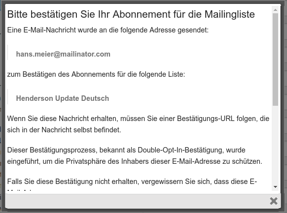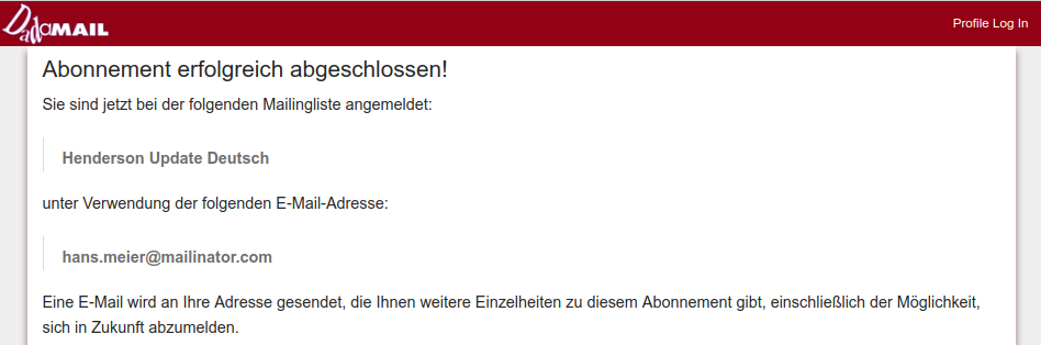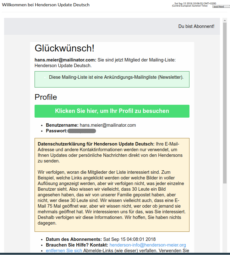 - Sie erhalten eine E-Mail, in der Sie auf der Liste begrüsst werden.